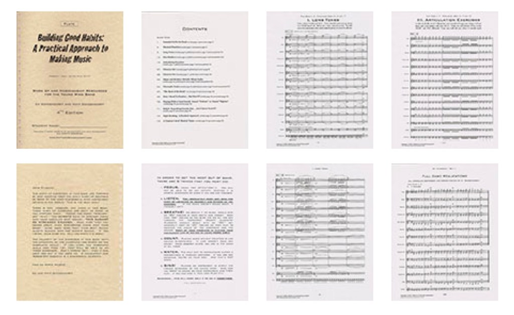 Building Good Habits features an easy-to-use sequenced layout of exercises that includes long tone practice, slur studies, articulation exercises, two sets of chorales (basic and advanced), and diatonic and chromatic scale resources. Most exercises comprise consecutive subsets of graduated difficulty, and all are orchestrated for the full band. The book concludes with “The Back Of The Book,” a brief section outlining good habits for practicing, good tone production, intonation, sight-reading, and other resources. Part book page numbers are cross-referenced in the score, enhancing the book’s candid layout.